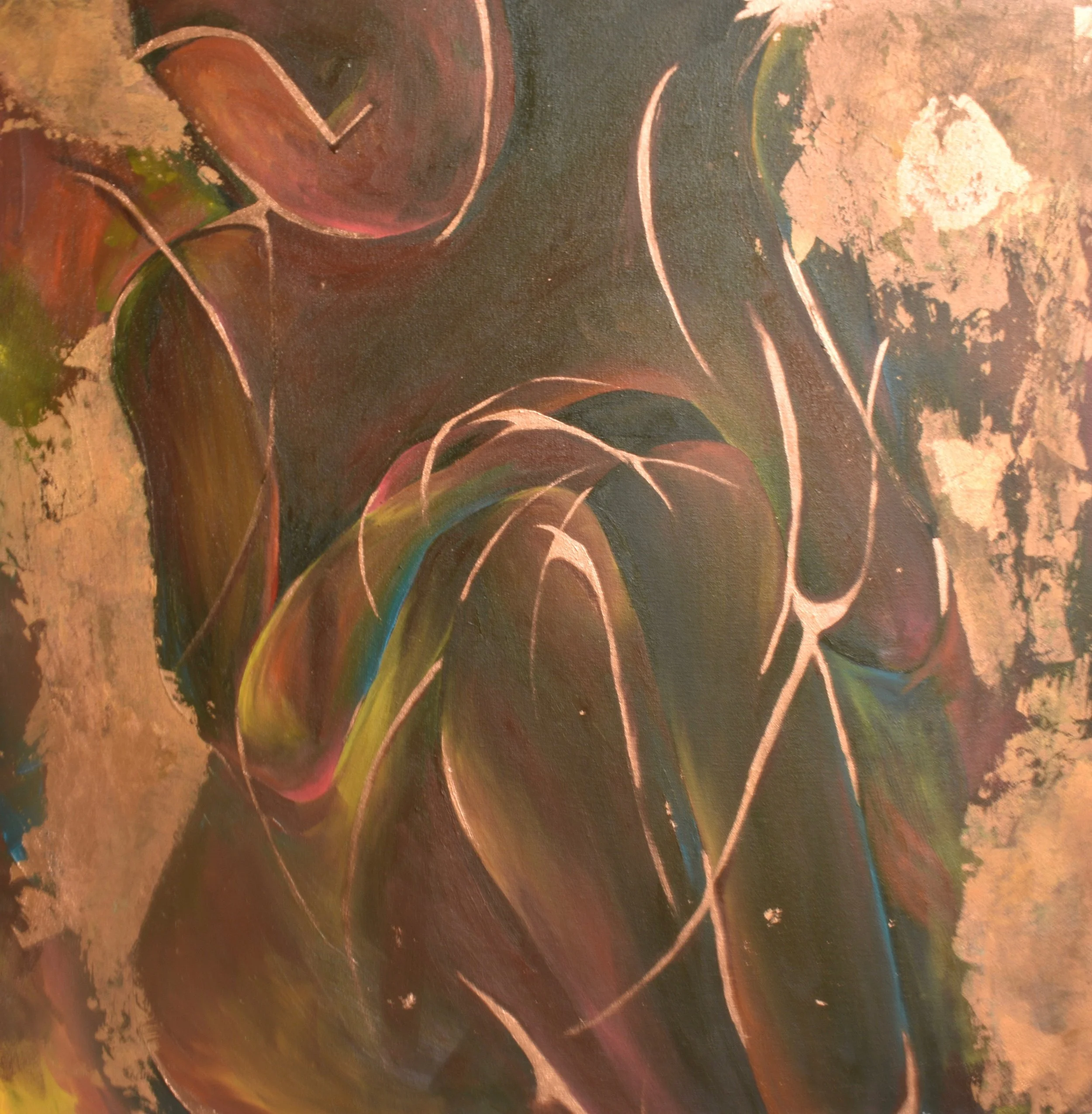 Reflections of Self. 36"x30". Oil stick and gold leaf on linen. 2019. View fullsize