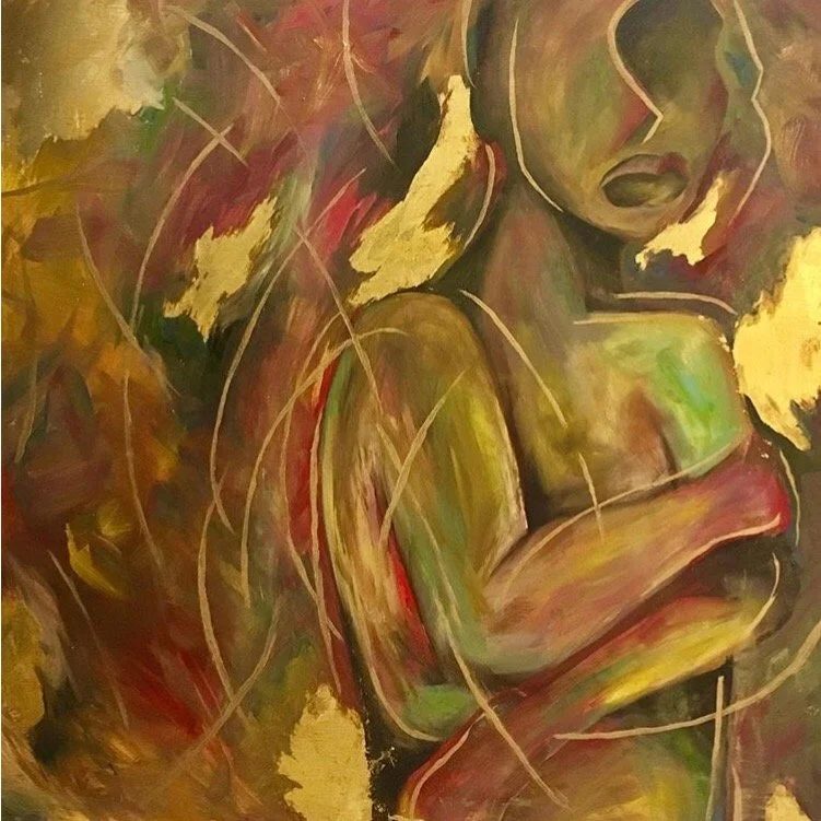Reflections of Self. 36"x30". Oil stick and gold leaf on linen. 2019.